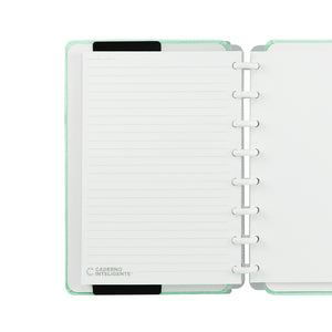 O Caderno Inteligente Verde Pastel traz uma sensação de refrescante e leve aos nossos dias. Com capa e contracapa em verde pastel e discos e elástico em branco, combina simplicidade e suavidade num estilo equilibrado e fácil de gostar.
