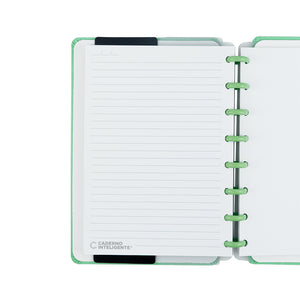 O Caderno Inteligente All Green destaca-se pela frescura e leveza da sua cor. Com capa e contracapa verdes, assim como discos e elásticos no mesmo tom, cria um visual natural e muito agradável.