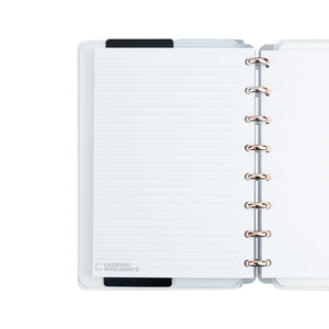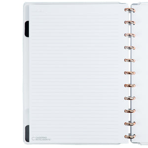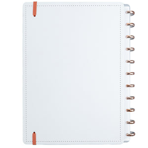 Se gostas de um estilo minimalista, mas com um toque especial, o Caderno Inteligente All White é perfeito para ti. A capa e contracapa em branco criam uma base clean, enquanto os discos e o elástico em rose gold acrescentam um detalhe sofisticado e elegante. Um design simples, mas que marca sempre pela diferença.