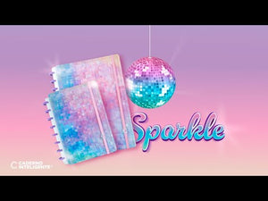 O Caderno Inteligente Sparkle chega com uma energia única, inspirado no movimento e na luz das pistas de dança. A sua capa, inspirada numa bola de espelhos, reflete brilho e cor, criando um efeito cheio de vida e imaginação.