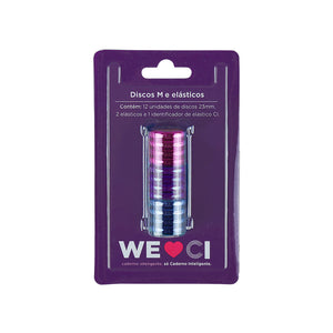 Cada kit inclui 12 discos, 2 elásticos e 1 identificador C, permitindo-te atualizar o visual do teu caderno de forma prática e simples.